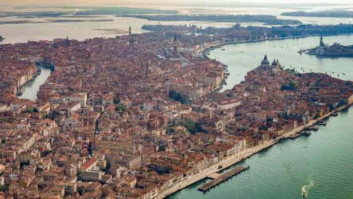 Pernah dengar pemandangan ikan berenang menuju daratan dengan ekornya mengepak ke Laut Adriatik? Jika belum, itu adalah pemandangan ajaib yang dilihat penumpang pesawat jelang mendarat di Bandara Marco Polo, Venesia, Italia. Tanggul MOSE, Pulau Lido, atap terakota, menara lonceng nan gagah, sampai Grand Canal yang legendaris adalah pemandangan yang tak mungkin terlupakan.