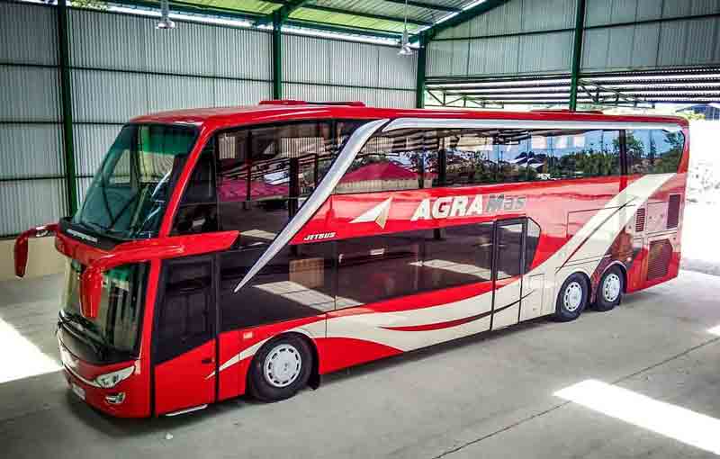 Salah satu yang akan dibahas adalah bus Super Double Decker yang dimiliki oleh Agra Mas. Bus ini menggunakan Scania K410IB yang dalamnya terbagi menjadi dua kelas yakni super eksekutif dan eksekutif.