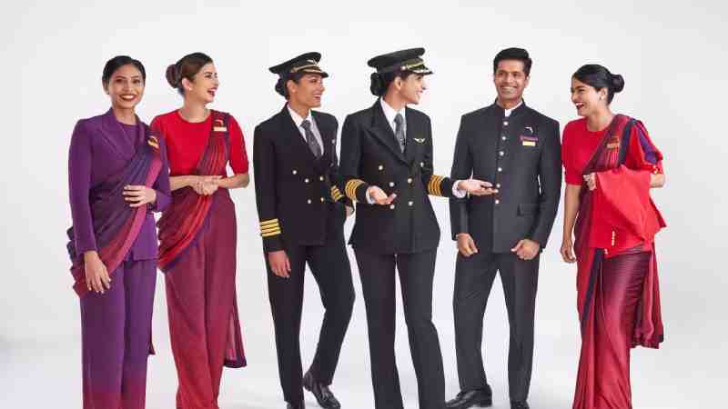 Palet warna seragamnya menampilkan warna merah tua, merah anggur, terong, dan aksen emas, yang memberi penghormatan kepada warisan negara. Air India juga menyoroti bahwa mereka “praktis dan cocok untuk melakukan tugas dalam penerbangan dengan kemudahan pergerakan” karena dikembangkan melalui konsultasi erat dengan karyawan maskapai, yang juga menguji desain baru. Sementara itu, seragam pilot memiliki “setelan double-breasted hitam klasik dengan motif yang terinspirasi oleh Vista, yang melambangkan profesionalisme, keabadian, dan semangat profesi penerbangan.”
