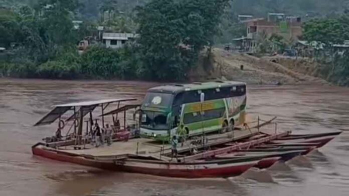 Sesapainnya di tepi sungai, bus melaju dengan mulus melewati papan kayu yang menopangnya di atas perahu yang cukup panjang sehingga menyentuh bibir sungai.