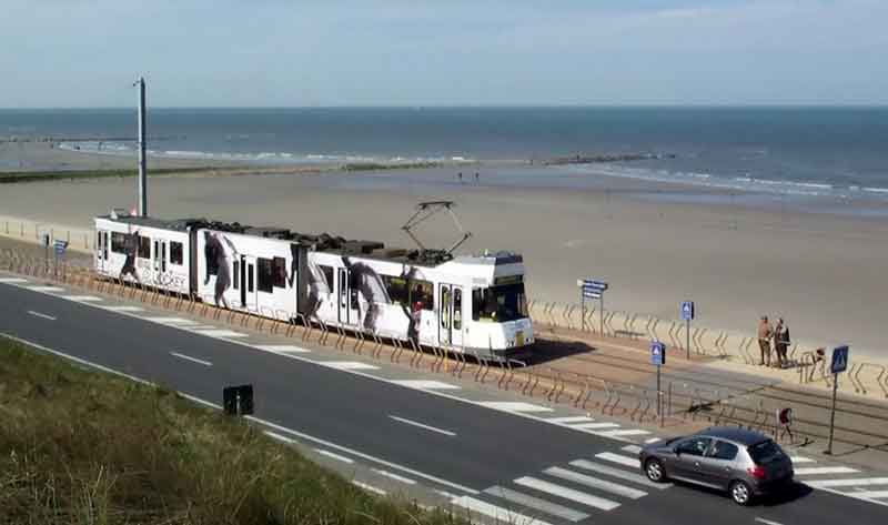 Perusahaan transportasi umum Flemish bernama De Lijn mengoperasikan trem yang menghubungkan kota-kota di sepanjang garis pantai Belgia antara De Panne dekat perbatasan Perancis dan Knokke-Heist dekat perbatasan Belanda. Trem bernama Coastal ini memiliki jalur sepanjang 42 mil atau sekitar 67 km dan menjadi yang terpanjang di dunia.