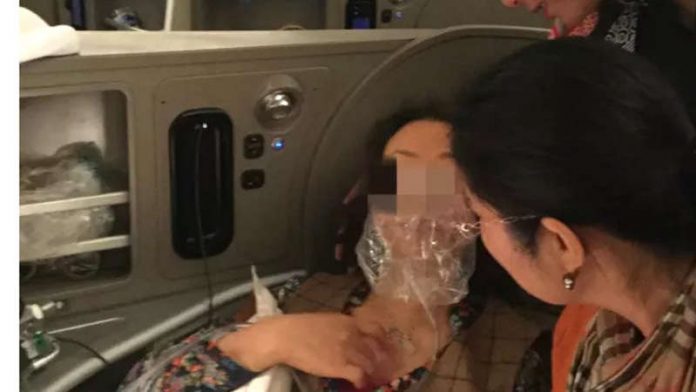 Seperti yang dihimpun KabarPenumpang.com dari sejumlah laman sumber, salah seorang penumpang berjenis kelamin wanita dalam penerbangan tersebut secara tiba-tiba mengalami gangguan pernapasan yang mengakibatkan dirinya sesak. Awak kabin yang menyadari hal itu langsung berusaha untuk memberikan pertolongan pertama dengan memindahkannya ke kelas bisnis dan memasangkan alat bantu pernapasan.
