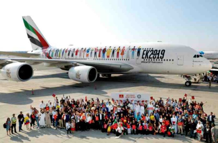 Dikenal sebagai negara di Timur Tengah yang menjunjung tinggi nilai toleransi, menjadikan keunggulan tersendiri bagi entitas di Uni Emirat Arab (UEA). Dan kilas balik ke tahun 2019, saat UEA merayakan “Tahun Toleransi” dan Perayaan Hari Nasional ke-48, maskapai Emirates dengan pesawat Airbus A380 – nomer penerbangan EK2019, berhasil memecahkan rekor dunia yang terbilang unik.