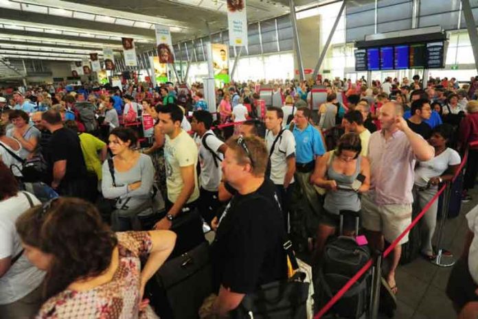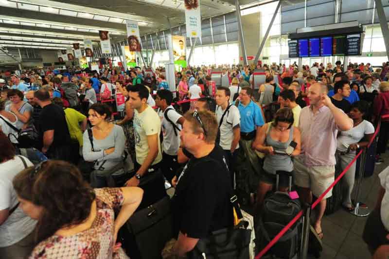 KabarPenumpang.com merangkum dari theguardian.com (24/9/2017), terlihat dari beberapa postingan di Twitter pagi itu, antrian mengular dari pintu depan semua terminal di bandara. Kejadian ini dikarenakan masalah pemadaman listrik, sehingga kontrol lalu lintas udara kembali ke proses manual untuk pesawat yang akan berangkat dan hanya mengizinkan 15 pesawat tinggal landas untuk setiap jamnya.