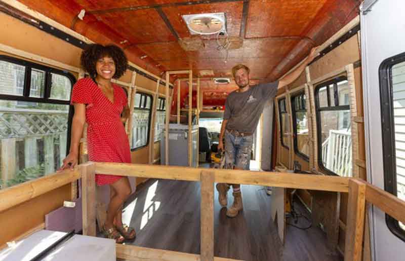 Butuh waktu sekitar satu bulan, bagi pasangan muda ini untuk mengubah bus antar jemput tua menjadi rumah kecil, dan berangkat untuk melakukan petualangan di seluruh negeri. Pasangan itu ialah Bobbi Jo Brown dan Riley Zimmer yang membeli bus dari perusahaan perbaikan dan penjualan mobil pada Mei. Yang mana kemudian, keduanya mengerjakan proyek tersebut sejak bus dibeli.