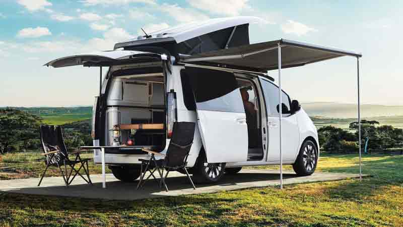 Di sisi eskterior, Hyundai menawarkan beberapa fitur, mulai dari atap, awning, sampai set kursi santai. Semuanya digerakkan secara elektrik dengan hanya satu sentuhan tombol di dalam kabin. Memang tak selengkap Camper Van lain, namun, pada umumnya itu adalah hal yang paling dibutuhkan pengguna.