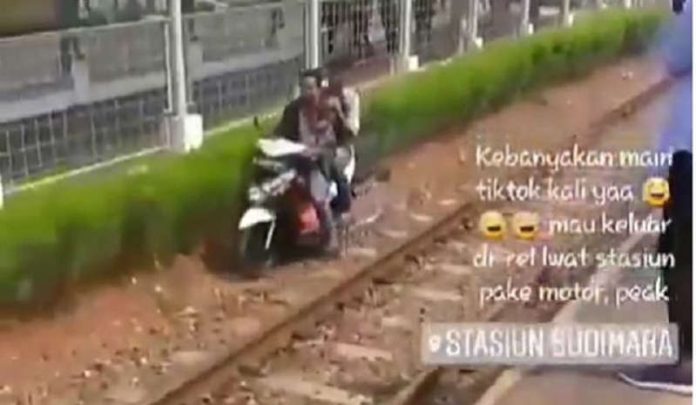 Ada-ada saja memang kelakuan orang Indonesia. Entah terlalu kreatif atau apa, tapi yang jelas tindakan yang dilakukan oleh dua pemuda di daerah Tangerang Selatan ini sontak mengundang berbagai reaksi dari netizen. Bagaimana tidak, mereka menunggangi sepeda motor di celah sempit antara peron dan rel. Kejadian yang tersebar di berbagai jejaring sosial media ini pun menjadi perbincangan masyarakat banyak.