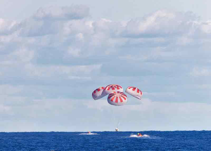 Mengutip dari BBC Internasional, keduanya menghabiskan waktu berjam-jam di dalam kapsul untuk mencapai Bumi. Kapsul itu terjun payung melalui atmosfer Bumi dan mendarat di perairan dekat pantai Florida, AS.