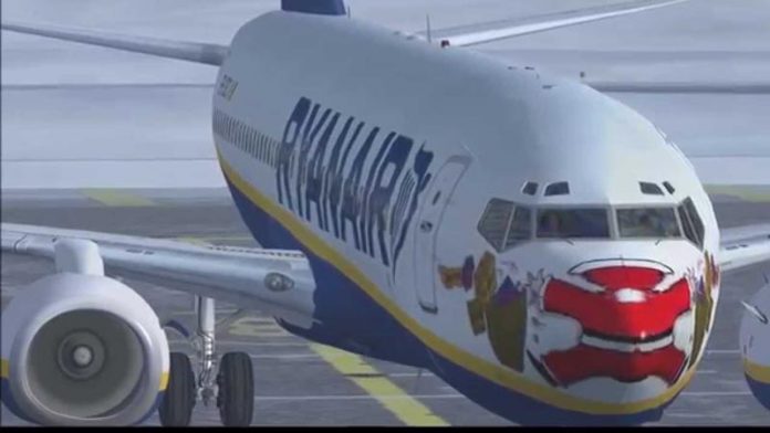 Tidak cuma satu, armada Ryanair lainnya juga pernah memasang sebuah livery yang sangat lucu. Di bagian depan pesawat, nampak sebuah Santa Claus yang seolah tertabrak oleh armada Boeing 737-200 milik Ryanair. Lucu ya!