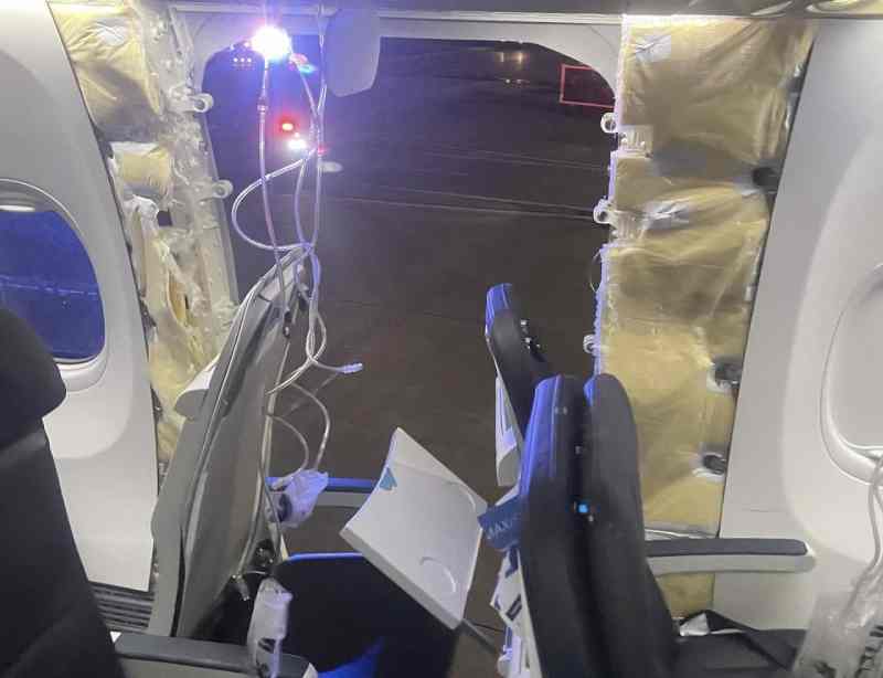 Para pejabat NTSB mengatakan kepada wartawan bahwa penutup pintu terlepas dari pesawat beberapa menit setelah lepas landas, menyebabkan tekanan kabin turun drastis dan menciptakan kondisi “keras” dan “berangin” yang mengerikan. Insiden Alaska Airlines menyebabkan seorang penumpang muda berusia 15 tahun yang duduk di sebelah emergency exit door dilaporka kehilangan bajunya saat Ia berhasil ditahan oleh ibunya.