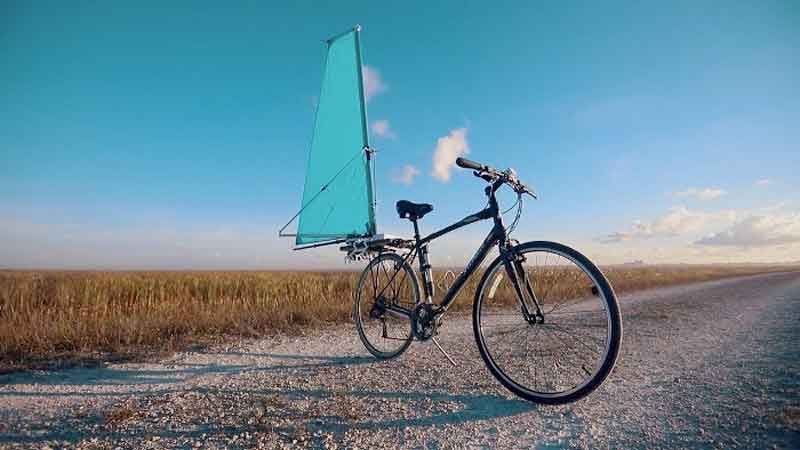 Mungkin penambahan layar tersebut akan terlihat konyol. Tetapi ide dengan layar tersebut agar pengendara sepeda bisa berkeliling menggunakannya di sepanjang jalan dan berpotensi menghemat tenaga untuk mengayuhnya.
