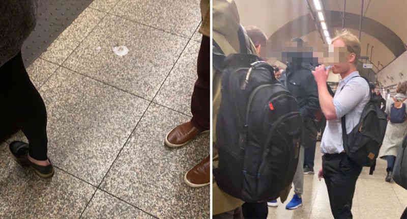 Penumpang bernama Melissa Therms mengunggah foto itu dengan caption, “Perilaku menjijikkan di stasiun Euston pagi ini. Platform yang penuh sesak dan pria ini mulai menyikat giginya dan meludah ke platform berulang kali.”