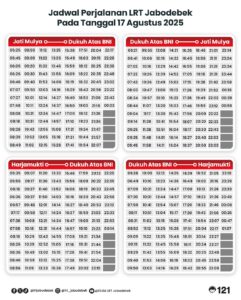 Siapa yang tak mau ketinggalan berbagai acara yang disuguhkan saat hari kemerdekaan Indonesia pada hari ini. Ya, berbagai acara menarik di berbagai tempat tentu masyarakat khususnya warga Jabodetabek ingin menghabiskan dan memanfaatkan waktu liburan hingga malam hari. Berbagai transportasi umum pun menginformasikan berbagai jadwal penambahan waktu di media sosial, salah satunya transportasi Light Rapid Transit (LRT) Jabodebek.