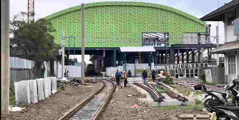 Terlihat juga pembangunan di sisi kanan dan kiri rel kereta api. Tempat penumpang menunggu kereta api juga masih dalam pembangunan. Meskipun pembangunan gedung baru masih berlanjut, tetapi penumpang selalu ramai memadati stasiun ini. Tak hanya adanya garis pembatas yang dipasang agar kenyamanan penumpang terjaga, namun petugas keamanan di stasiun pun terus memandu jalannya penumpang serta arahan yang membuat penumpang makin aman.
