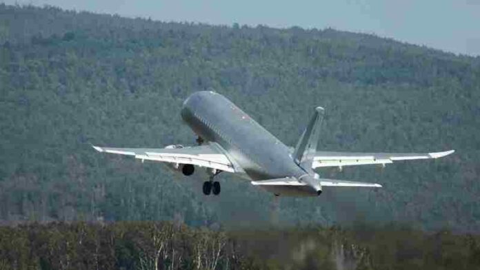 Pesawat Regional Jet SJ-100 Memulai Uji Penerbangan Tanpa Mesin Baru Rusia