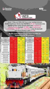 KAI pun mengimbau kepada para penumpang agar cermati kembali jadwal terbaru agar perjalanan tetap terencana dengan baik. Tiket Commuter Line Bandung Raya untuk perjalanan mulai 1 Februari 2026 dan seterusnya sudah dapat dipesan sejak H-7 atau mulai 26 Januari 2026 melalui aplikasi Access by KAI. Informasi lengkap juga tersedia melalui media sosial resmi @commuterline serta layanan pelanggan di (021) 121.