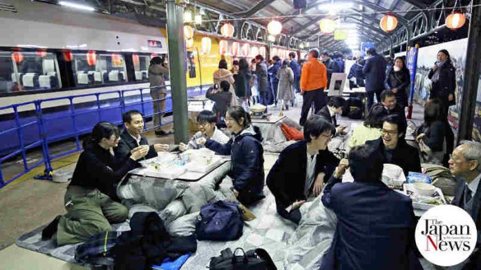 KabarPenumpang.com melansir laman the-japan-news.com, mereka bukanlah penumpang yang akan kembali setelah pulang kerja untuk naik kereta. Orang-orang ini nyatanya hadir di peron untuk mengikuti acara musim dingin yang diselengggarakan oleh panitia penyelenggara kontes sake nasional untuk mempromosikan atsukan sake hangat.