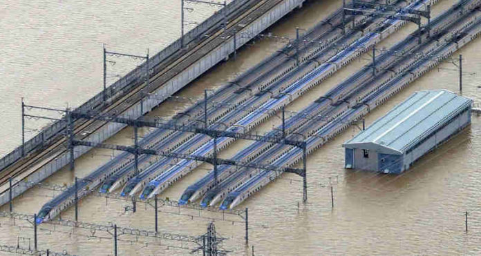 East Japan Railway Company (JR East) mengatakan, sepertiga dari kereta peluru yang digunakan pada satu jalur telah rusak oleh banjir. Hal ini karena air dari sungai yang meluap dan memasuki fasilitas di Prefektur Nagano.
