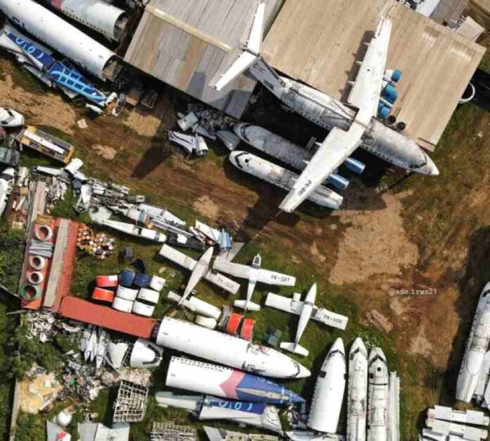 Menurut keterangan warga setempat, lahan yang ada awalnya ingin dijadikan restoran dengan konsep pesawat. Konsep ini tentu tidak asing di Indonesia terlebih dunia. Namun, entah kenapa restoran yang disebut-sebut itu tak kunjung dibangun. Sebaliknya, rongsokan pesawat terus-menerus datang sejak lahan tersebut disewakan ke seseorang pada tahun 2019.