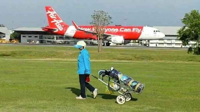 Nama lapangan golf itu adalah Kantarat yang dibangun di atas rumput di antara dua landasan pacu bandara. Dan hebatnya, lapangan golf di tengah runway ini usianya sudah lumayan lama. Dari sejarahnya, Don Mueang yang menjadi salah satu bandara tertua di dunia, awalnya dibuka sebagai pangkalan Angkatan Udara Kerajaan Thailand pada tahun 1914, dengan penerbangan komersial dimulai pada tahun 1924.